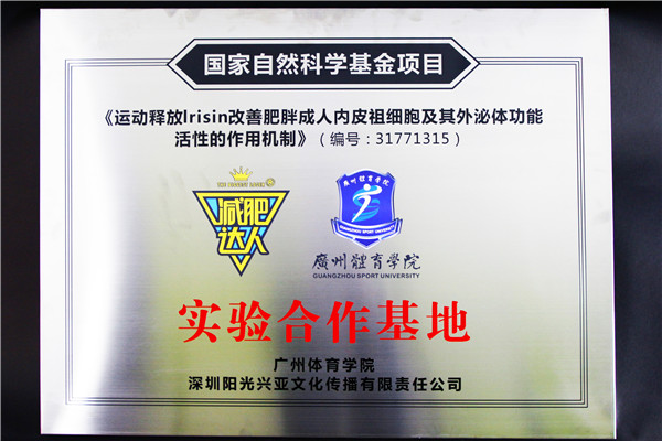 12月27日,減肥達(dá)人和廣州體育學(xué)院合作的研究項(xiàng)目《運(yùn)動(dòng)釋放lrisin改善肥胖成人內(nèi)皮祖細(xì)胞及其外泌體功能活性的作用機(jī)制》獲得國(guó)家自然科學(xué)基金資金資助,深圳陽(yáng)光興亞文化傳播有限責(zé)任公司(減肥達(dá)人)作為實(shí)驗(yàn)合作基地獲得項(xiàng)目授牌,廣體院胡教授、雷教授、黃俊豪博士、廖靜雯博士、項(xiàng)明強(qiáng)博士,陽(yáng)光興亞公司領(lǐng)導(dǎo)李亞興、陳華毅共同出席授牌儀式。