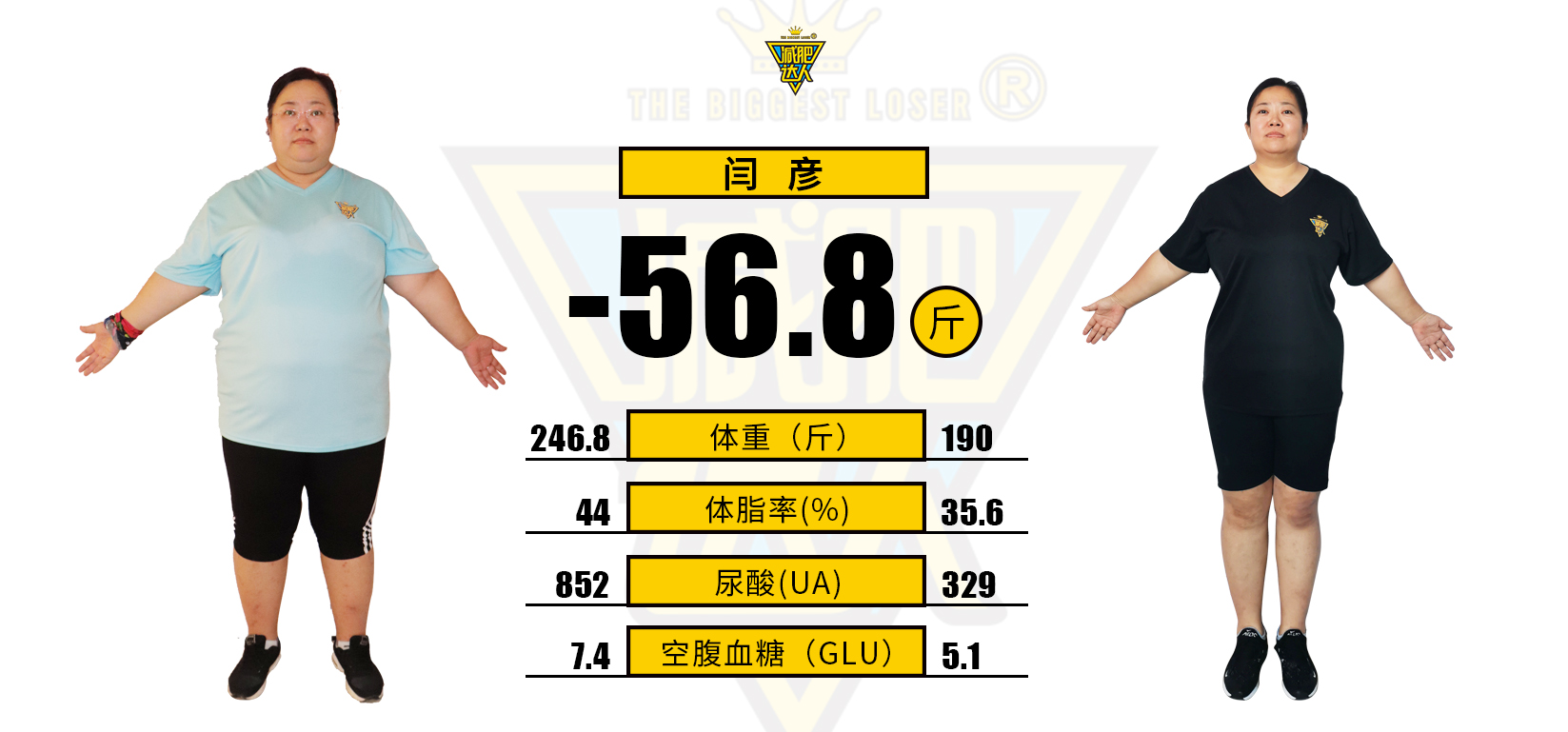 訓(xùn)練是艱苦的,但是從身體酸痛到情緒變化,她都有蔡培霞教練事無巨細(xì)的指導(dǎo)和陪伴。于是,閆女士得以以最好的狀態(tài),投入到每天的訓(xùn)練中,一步步接近心中的目標(biāo),成功減重56.8斤。